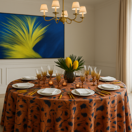 LuxR transforms original artwork into luxury tablecloths and curated tabletop pieces.