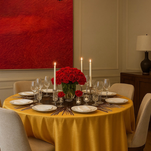 At LuxR, we design luxury tablecloths, curated tabletop pieces, and art-driven events that revive meaningful gatherings. Rooted in original artwork and guided by designer Paolo Mizrahi.