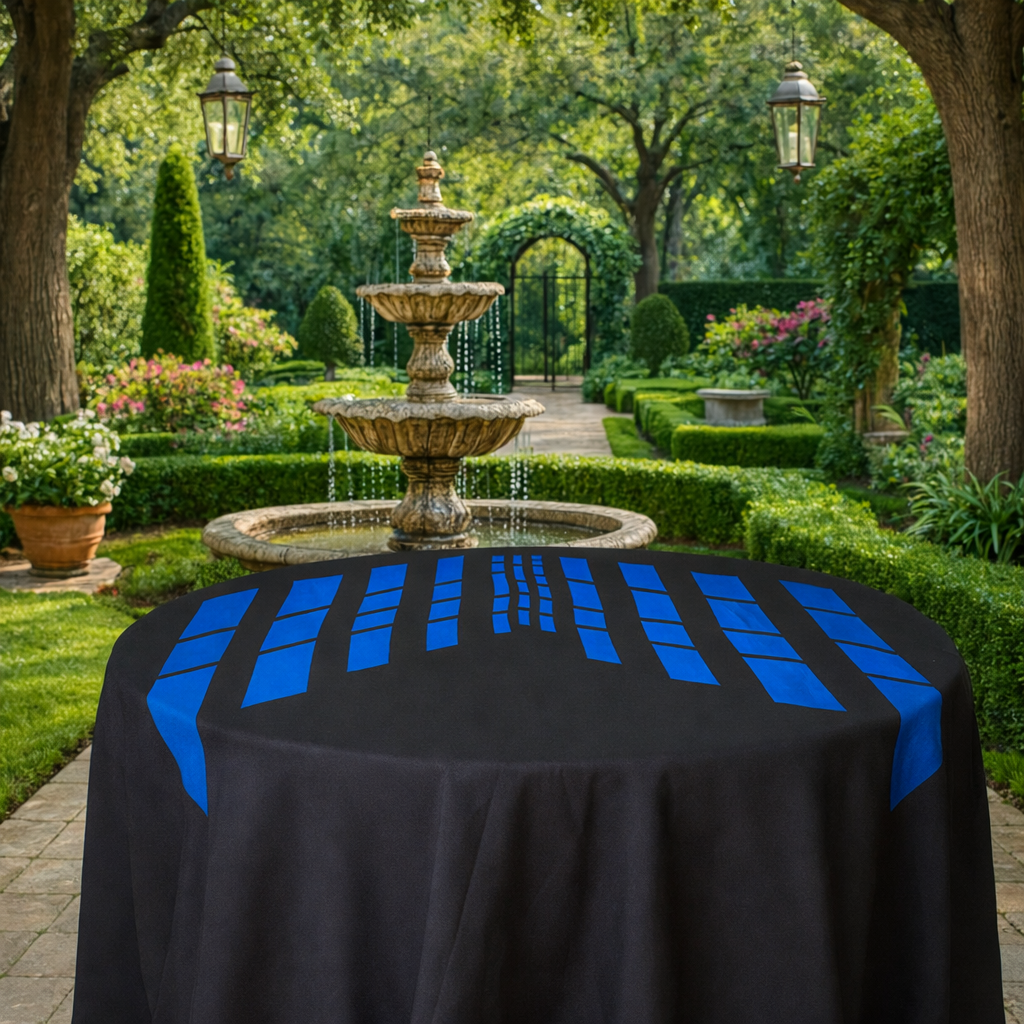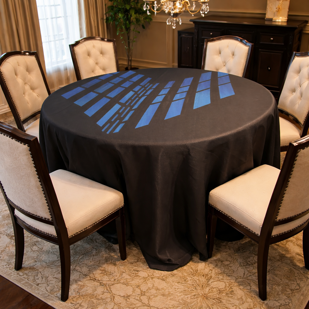 Inspired by one of Paolo Mizrahi’s original abstract paintings, this striking design was born from an unforgetable moment: a butterfly whose vivid colors felt almost unreal, deep turquoise against deep dramatic black. That fleeting beauty became the spark for a modern composition of geometric movement and luminous contrast. Reimagined for luxury tabletop styling, the pattern delivers a sophisticated balance of artistry and structure- bold yet refined, contemporary yet timeless.